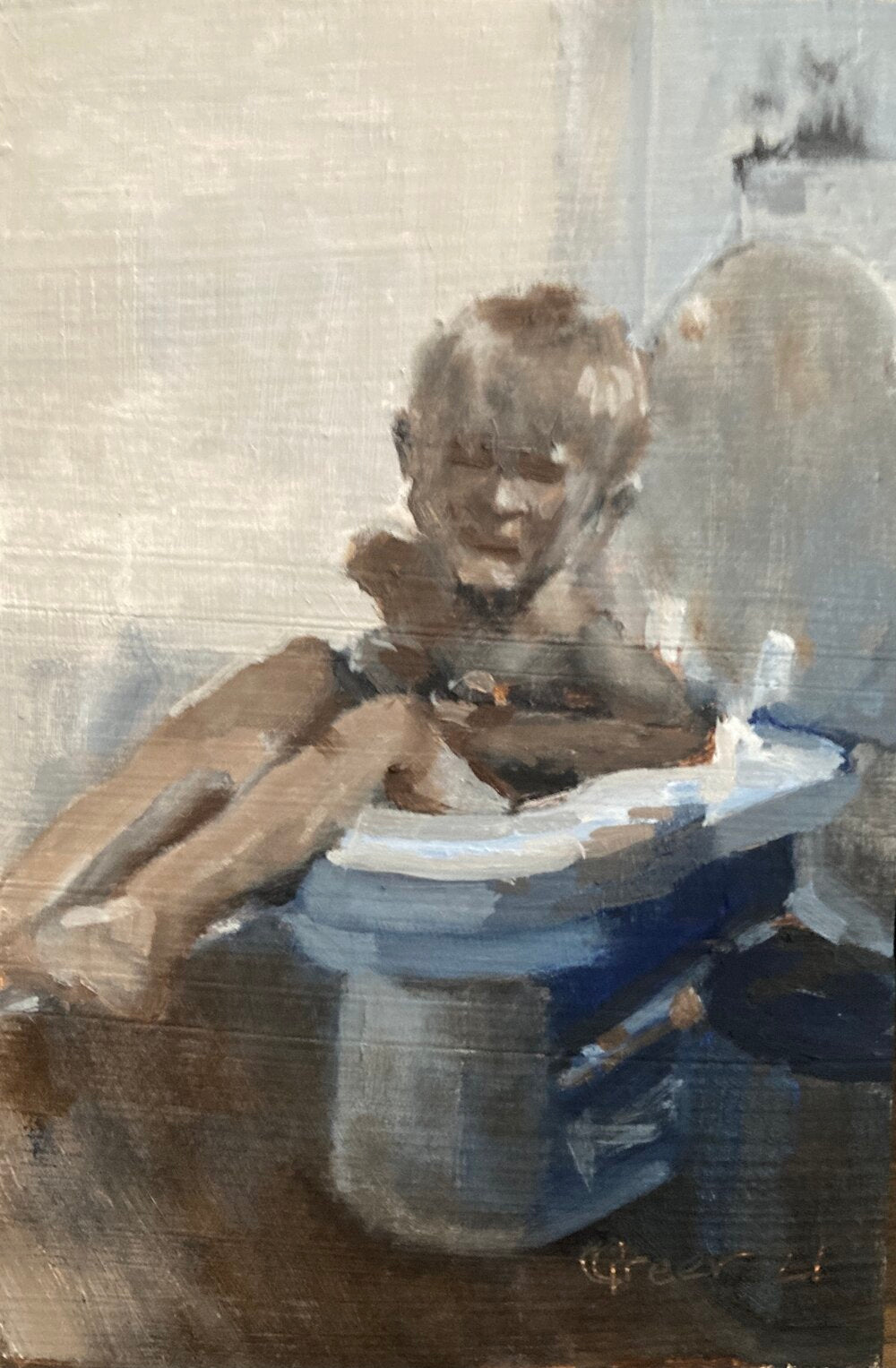 6" x 4" Oil On Board. Someone had a mishap while on the potty.